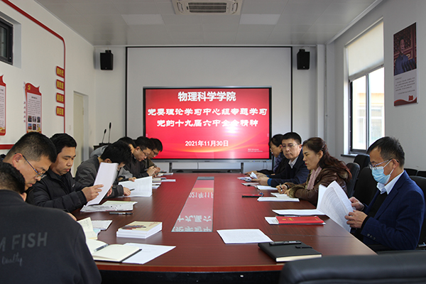 在博逸楼401会议室举行党委理论学习中心组(扩大)理论学习会,专题学习党的十九届六中全会精神。学院党政领导李升学、滕冰、郝伟、龙云泽,党委组织员王志琴,院长助理以及其他党委委员、党支部书记、辅导员参加学习。会议由院党委书记李升学院主持。
