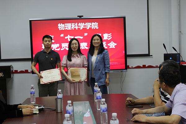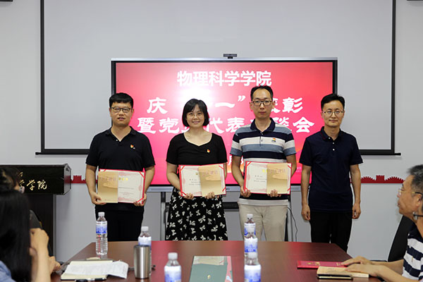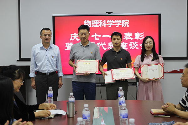 会上,应用物理系教授万勇、基础物理教学中心副主任徐洁代表优秀共产党员、新能源科学与工程系党支部书记曹德让代表优秀党务工作者分别作了发言。