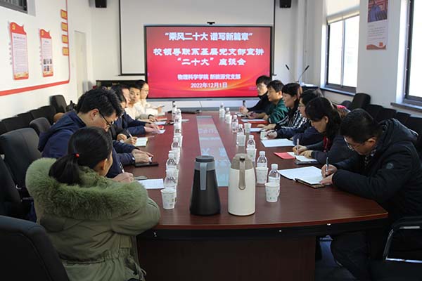新能源科学与工程系党支部宣讲党的二十大精神,并以“乘风二十大 谱写新篇章”为主题与支部教师党员座谈,学院党委书记郝伟、党委副书记董永红及支部全体教师党员参加会议。
