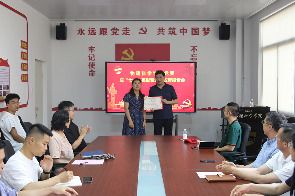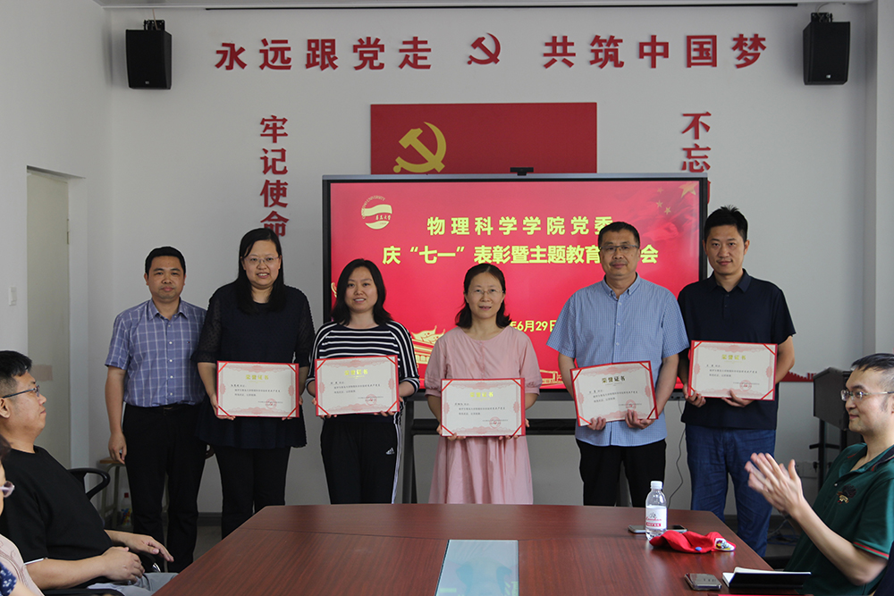 委员会关于表彰优秀共产党员、优秀党务工作者、先进党支部的决定》,19名优秀共产党员、5名优秀党务工作者、4个党支部受到了表彰。郝伟、滕冰、龙云泽、邵渭泉等党委班子成员为受到表彰的先进集体和优秀个人颁发了荣誉证书。