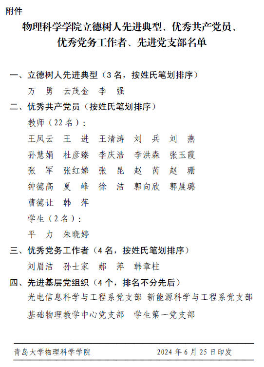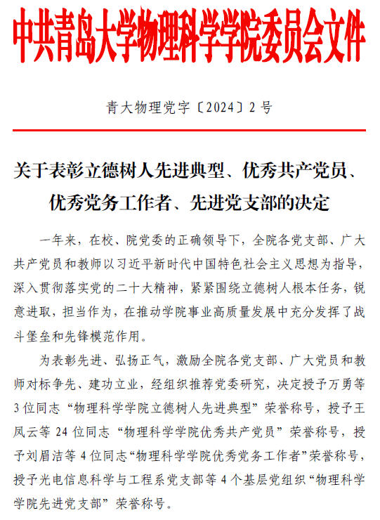 关于表彰立德树人先进典型、优秀共产党员、优秀党务工作者、先进党支部的决定