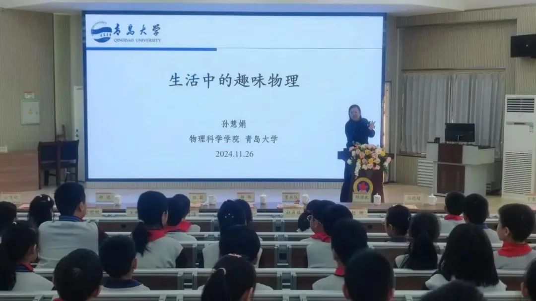 应用物理系党支部书记孙慧娟博士为青岛嘉峪关学校教育集团学校的学生作了《生活中的趣味物理》的科普报告,受到同学们的热烈欢迎。