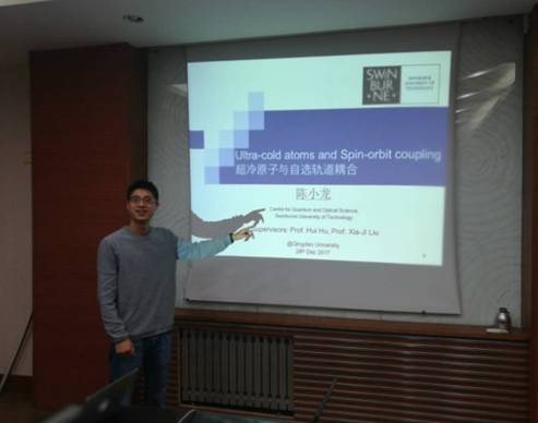 陈小龙博士本科毕业于华东师范大学光电子科学与技术专业,硕士期间留学于意大利,获得了意大利Trento大学和意大利国际高等研究院(SISSA)的联合双重硕士学位,目前是澳大利亚Swinburne University of Technology大学的博士,师从于胡辉教授和刘夏姬教授。主要从事量子流体的玻色-爱因斯坦凝聚方面的理论工作,数值计算能力非常扎实。目前在美国物理协会的Physical Review A期刊上以第一作者的身份发表过三篇文章。