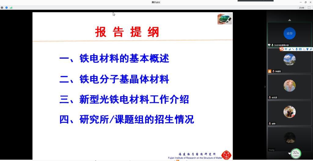 师生作了题为《新型光铁电体材料》的线上学术报告,并作了研究生招生宣讲。学院部分教师、研究生、本科生参加了报告会,报告会由应用物理系副主任钟德高主持。