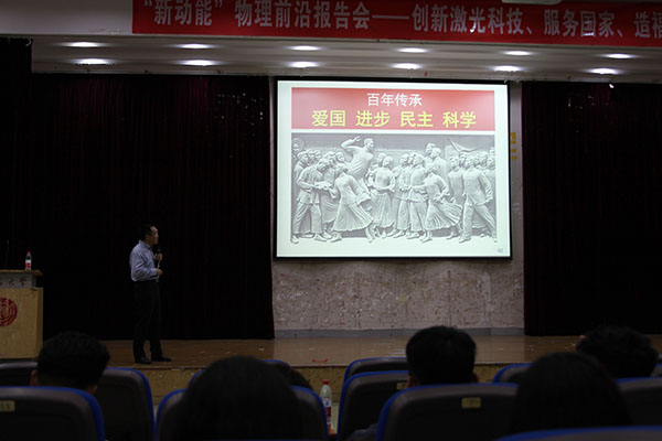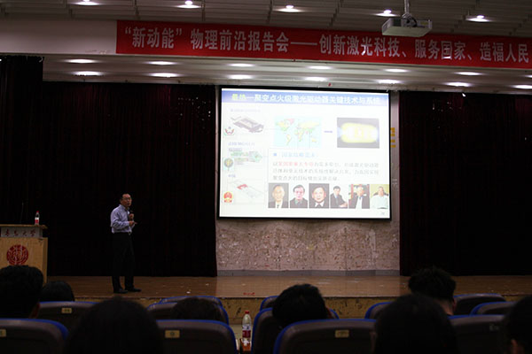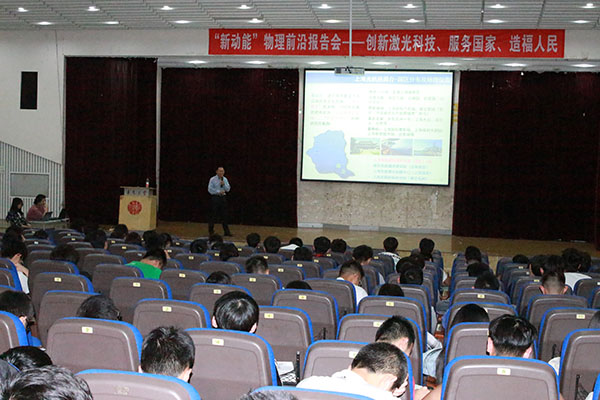学生作了题为《创新激光科技、服务国家、造福人民》的“新动能”物理学前沿学术报告暨硕士招生宣讲。学院院长滕冰主持报告会。