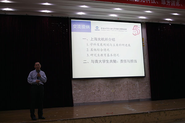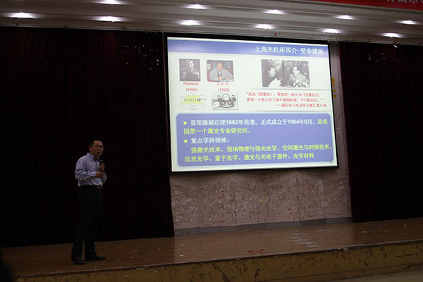 5月19日下午,中国科学院上海光学精密机械研究所党委书记、技术委员会副主任邵建达受邀在金家岭校区图文报告厅为h动漫