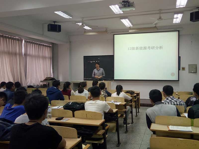 学生在考研方面的优势和不足,结合2012级新能源专业的考研情况对2013级同学的目标院校和备考方式进行了详细的指导;最后,李山东教授就同学们提出的考研心态、如何择校、目标院校专业师资、目标院校专业发展前景等问题进行了耐心的解答,同学们提问热烈,报告在热烈的气氛中圆满结束。