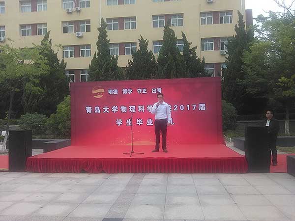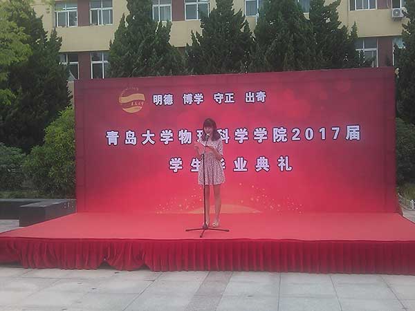 2013级应用物理专业鲜怡同学代表毕业生发言,表示一定不辜负老师的期望,尽最大努力创造精彩人生。