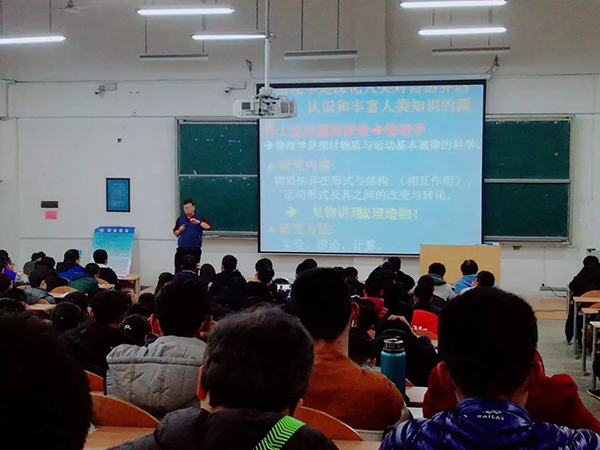 2017级学生作了题为《物理学一一不断推动人类社会文明进步的科学》的学术报告,报告会由张芳主任主持。