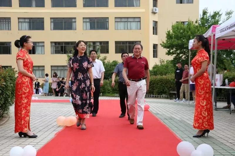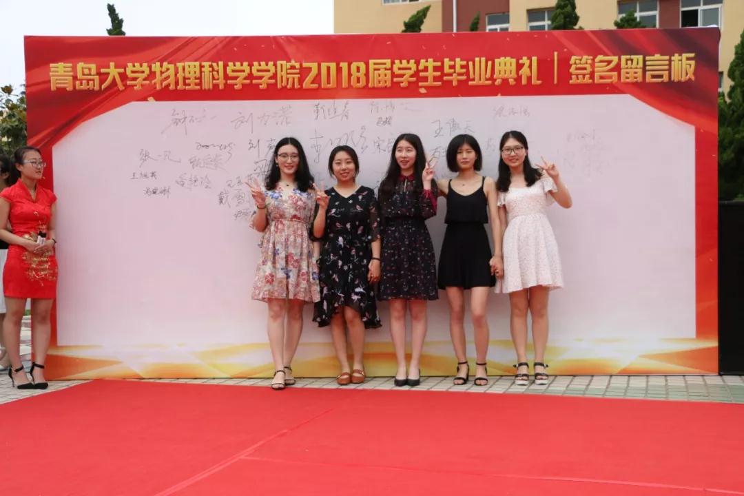 典礼上毕业生们与他们的恩师陆续走过红毯,在留言板上签下自己的名字并合影留念。