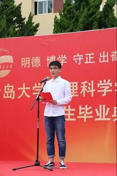 考取中国科学院大学的毕业生代表张西宁发言,他对四年美好大学生活进行了回顾,与大家分享了自己的感慨和领悟。他感谢学院、老师和同学们,感谢大家长期以来的支持与陪伴!并祝愿学院的明天更美好更灿烂!