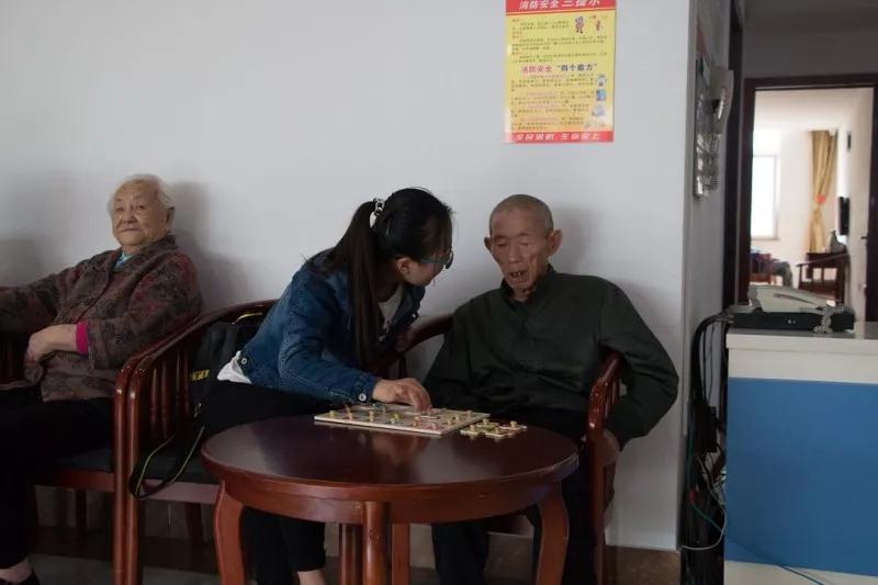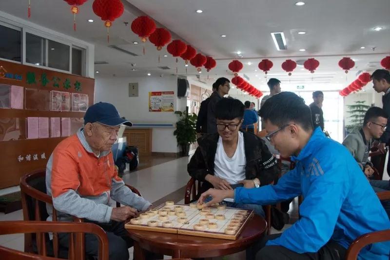 演出结束后,同学们陪爷爷奶奶们聊天、下象棋、打牌,场面其乐融融。
