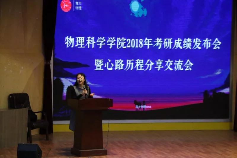 2018年考研成绩发布会暨教研心路历程分享交流会,于5月11日晚在浮山校区师范学院学术报告厅举行。院领导滕冰、周志强出席发布会。物理学(师范类)系主任张芳老师、学工办主任李慧晶老师、2014级光电信息科学与工程专业班主任韩文娟老师、2014级材料物理专业班主任钟德高老师参加发布会。